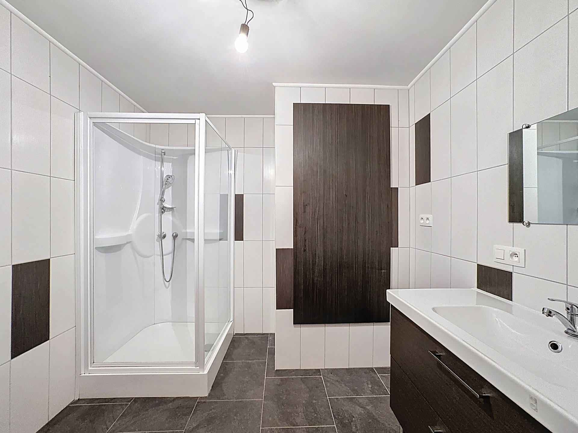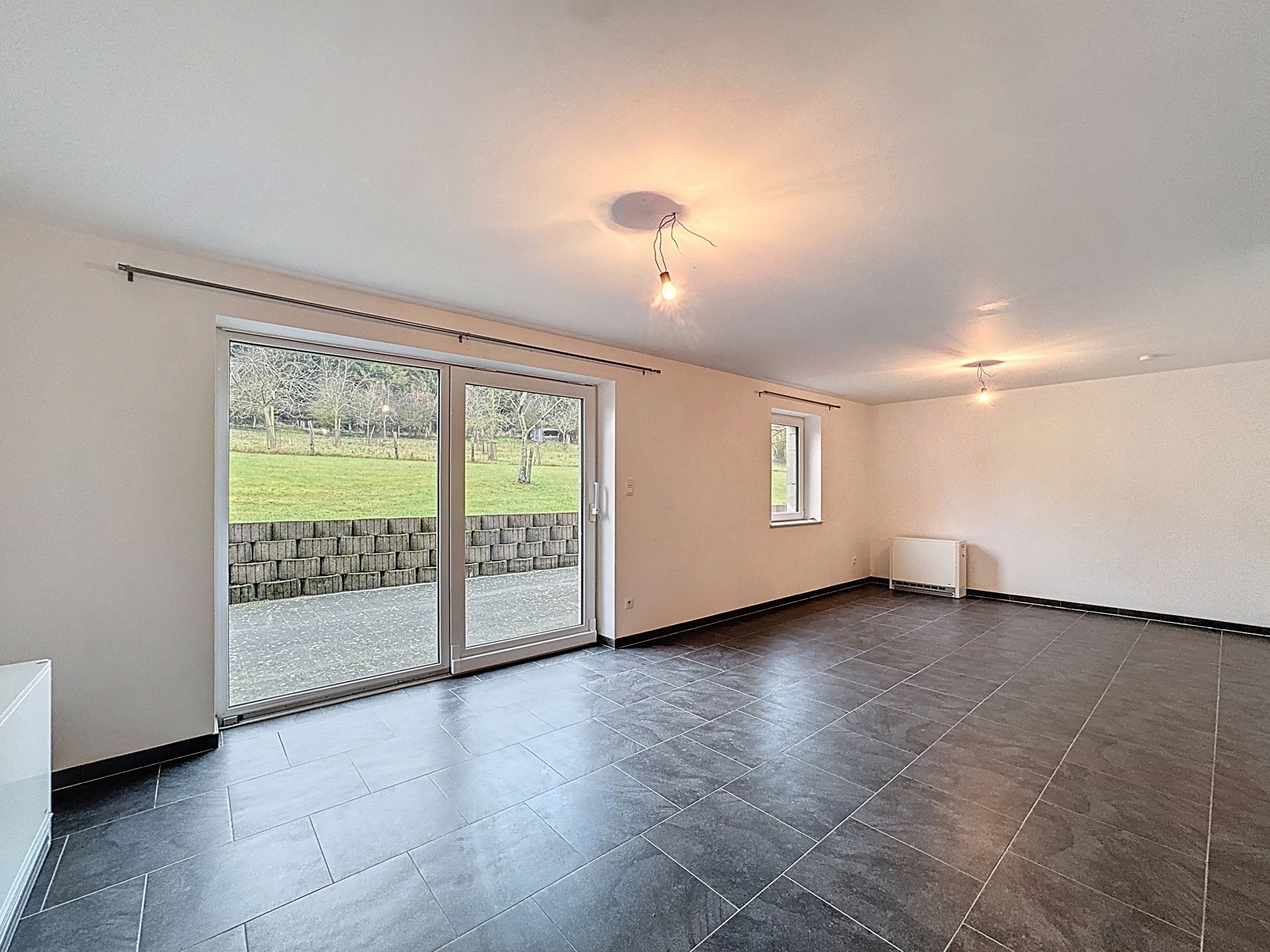 Venez découvrir ce très bel appartement deux chambres situé au rez-de-chaussée d'une petite résidence sise dans le très paisible village de Vellereux dans la Commune d'Houffalize. Il se compose d'un hall, d'un vaste séjour ouvert sur la cuisine équipée, d'une grande terrasse privative, d'un jardin commun, d'une salle de douche avec WC est espace buanderie ainsi que de deux chambres. Parking privatif devant l'appartement. Très bon coefficient énergétique: Classe C (20180105000710 - 203 kWh/m².an - 18.626 kWh/an). Châssis en PVC double vitrage, radiateurs électriques à accumulation. Situation idéale avec accès rapide à la E25 et arrêt de bus devant l'appartement. Forfait de 50€/mois pour les charges communes (électricité des communs, entretien du jardin commun et de la microstation). A visiter sans plus attendre.